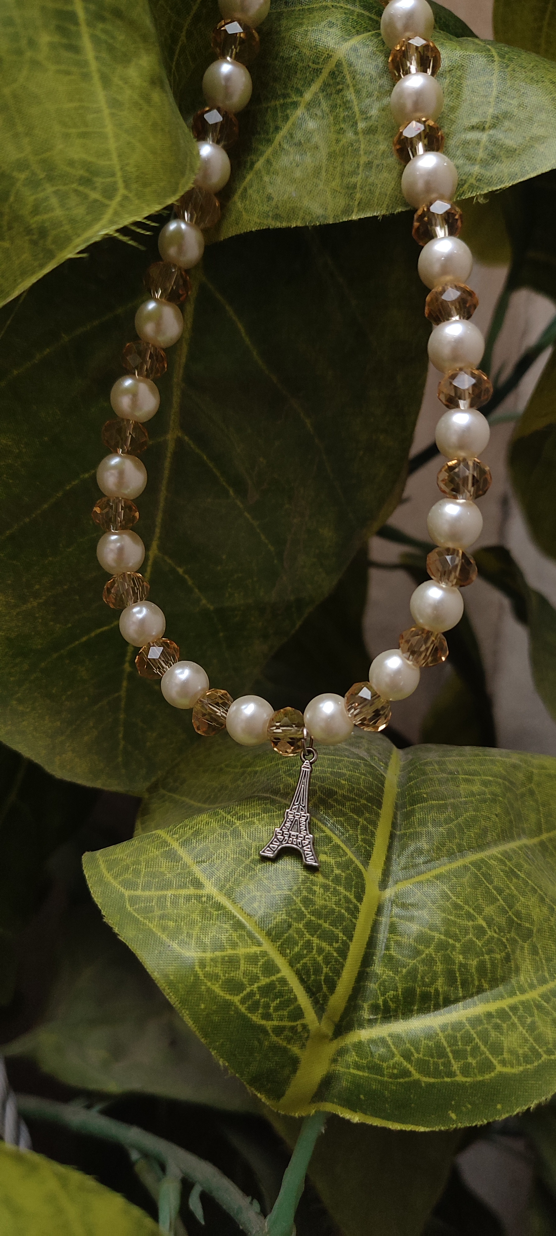 گردنبند دخترانه مرواریدی طرح ایفل