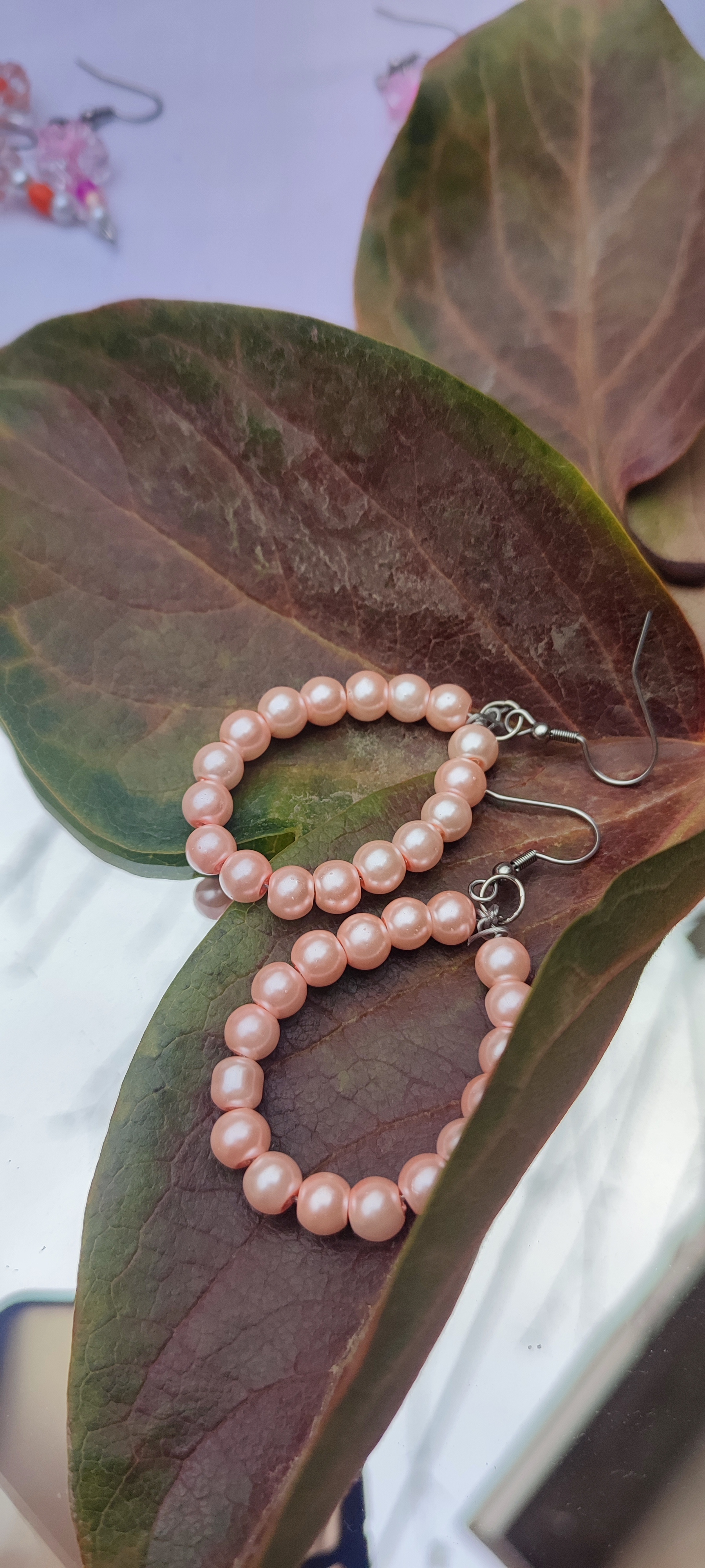 گوشواره دخترانه مرواریدی صورتی مدل بیضی