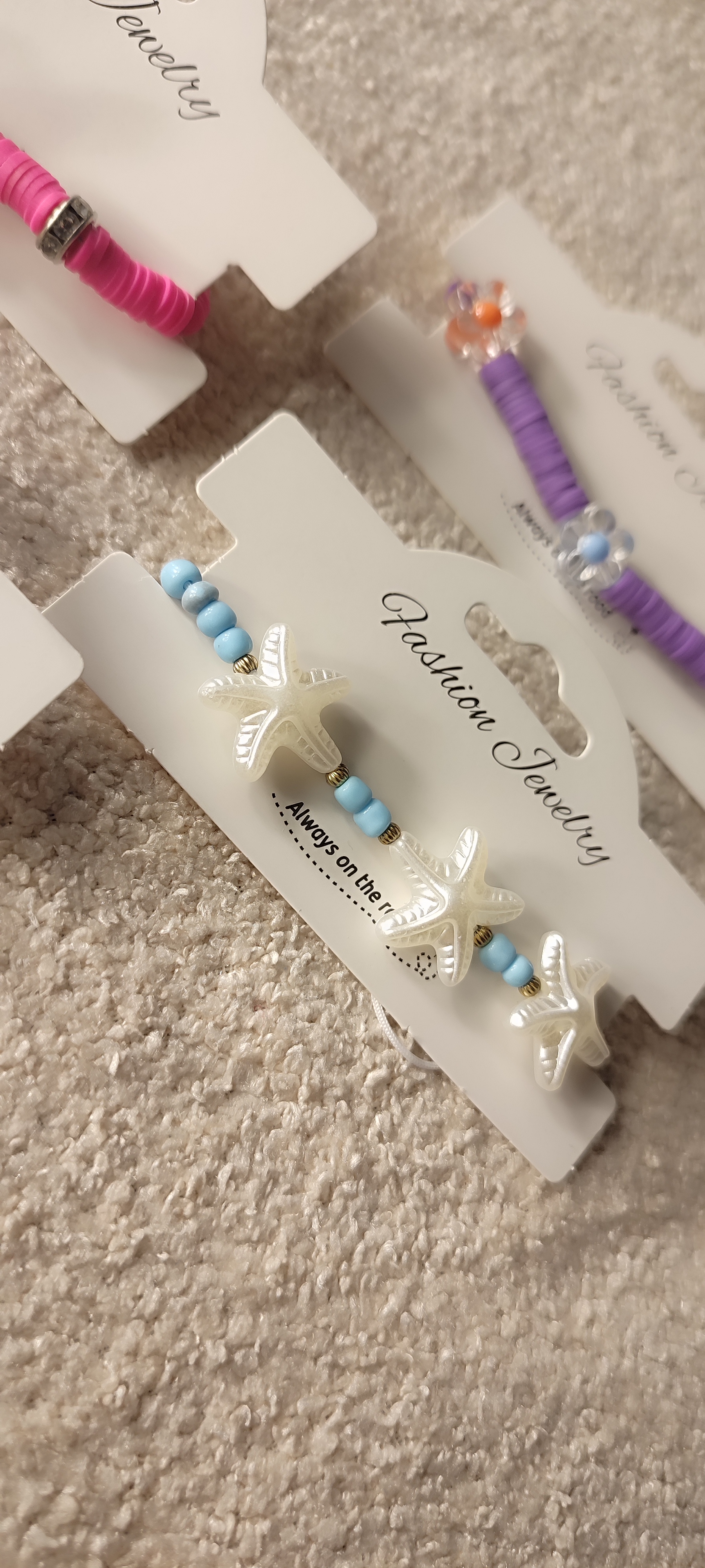 بستهبندی: دستبندها روی کارتهای کاغذی با عنوان "Fashion Jewelry" بستهبندی شدهاند که برای عرضه و فروش آماده هستند